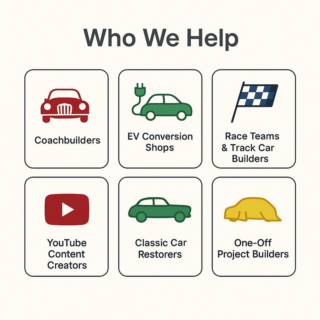 Got a tricky part for a classic restoration, a complex custom build, or a novel EV conversion? We'll take your concept from napkin sketch to engineered, delivered part—fast.